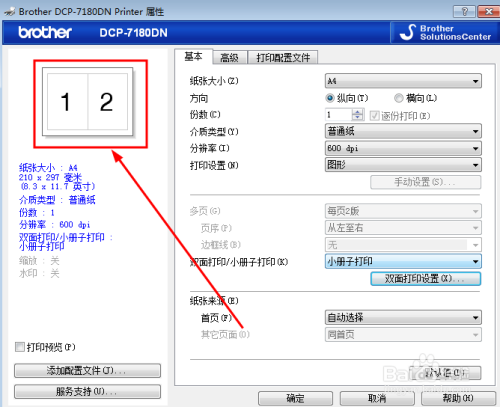 2.2 在打印属性中的【根基】选项中,找到【双面打印/小册子打印】,选中下面的小册子打印。