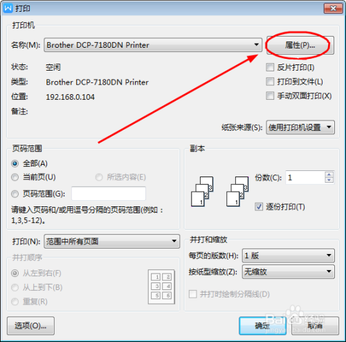 2.1按快捷键“ctrl+P",调出打印菜单,点开【属性】选项,如下图: