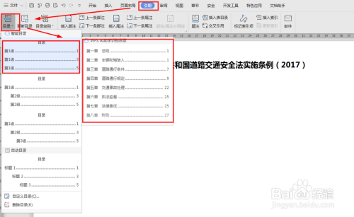 我们以一篇《中华人平易近共和国道路交通平安法实施条例》文章为例,在wps字处置软件情况中进行操作申明。
