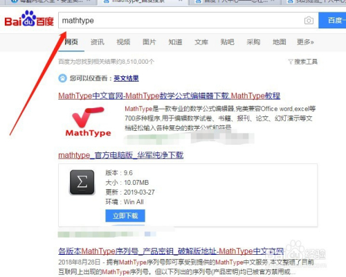 在百度的搜刮栏输入mathtype