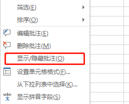 然后在适才被批注的单位格,右击鼠标拔取“显示/埋没批注”,这样批注就可以显示出来了