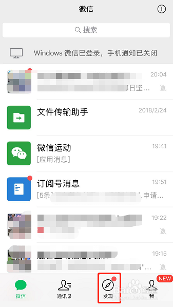 进入首页后,在页面下方找到【发现】图标,如图所示,点击该图标!