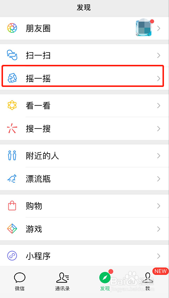 点击后进入发现本家儿页,在发现本家儿页下找到【摇一摇】一栏,如图所示,点击此栏!
