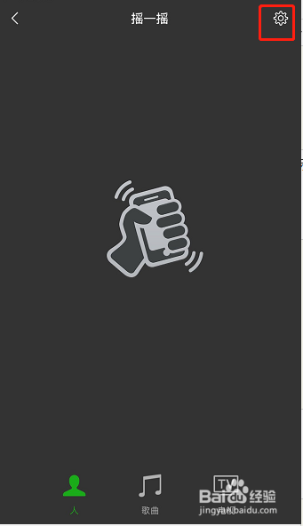 点击后进入摇一摇本家儿页,点击页面右上角齿轮样式的(设置)图标,如图所示!