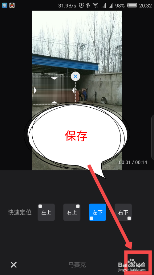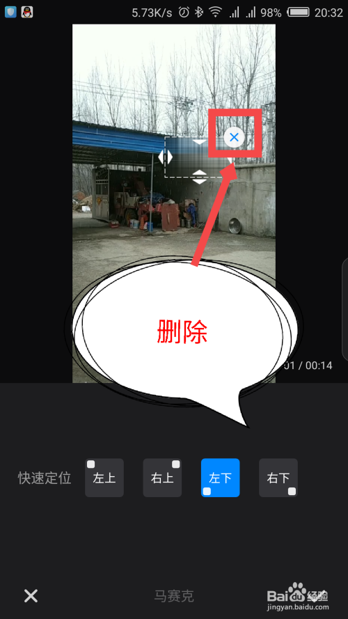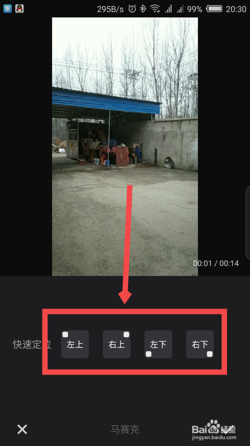 底部会弹出一个快速定位马赛克位置的选项,有四个选项,选择一个位置。如图所示