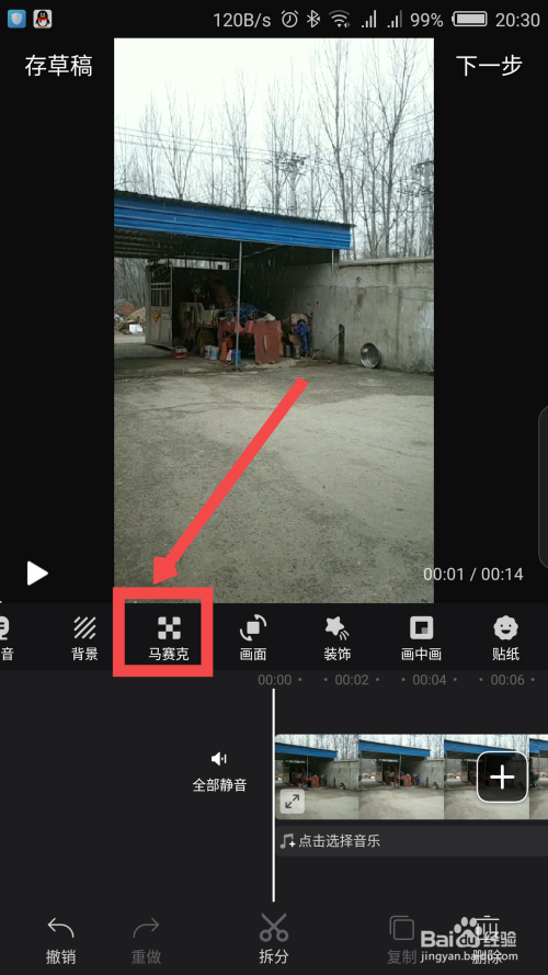 经由过程滑动选项,找到马赛克功能,点击利用马赛克。如图所示