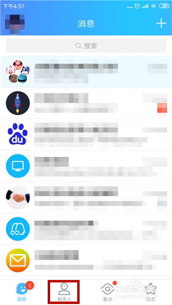 打开手机QQ后鄙人方的导航栏点击【联系人】。