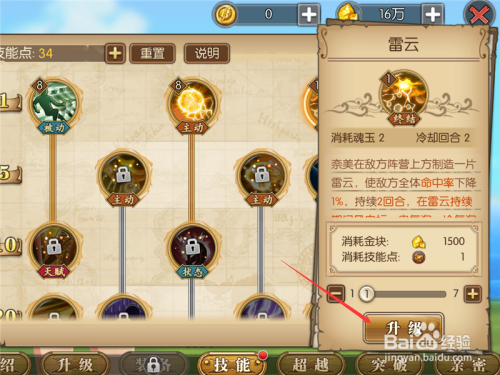 点击技术对话框下方的“进级”按钮,就可以进级奈美的技术了。