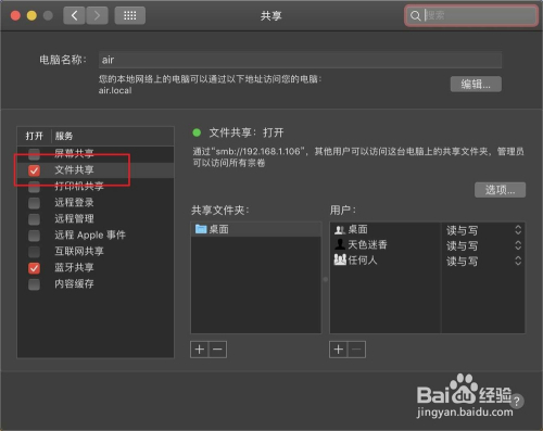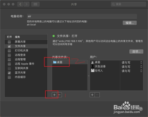 勾上文件共享,然后点击+添加一个共享文件夹。