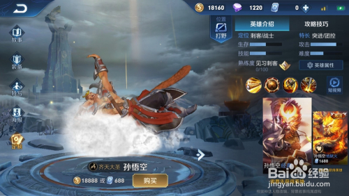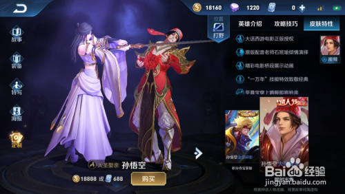 采办大圣娶亲皮肤后,在英雄池中找到孙悟空,点击左下角的定制。