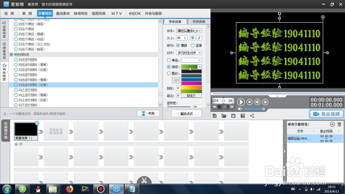 确定之后,就将文字导入了视频预览区域,我们可以进行文字的根基属性的点窜