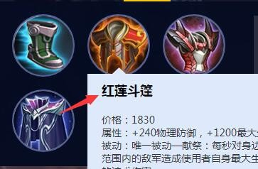 下一步我们可以给项羽出红莲大氅,红莲大氅能提高血量和护甲使项羽的对线抗压能力更强。