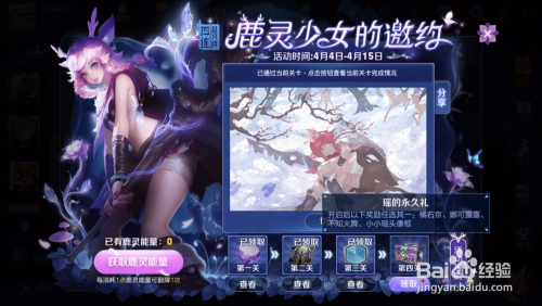鹿灵少女的邀约活动中,每经由过程一个关卡,就可以获得对应的关卡奖励,此中第四关通关,就可以获得永远礼包奖励。