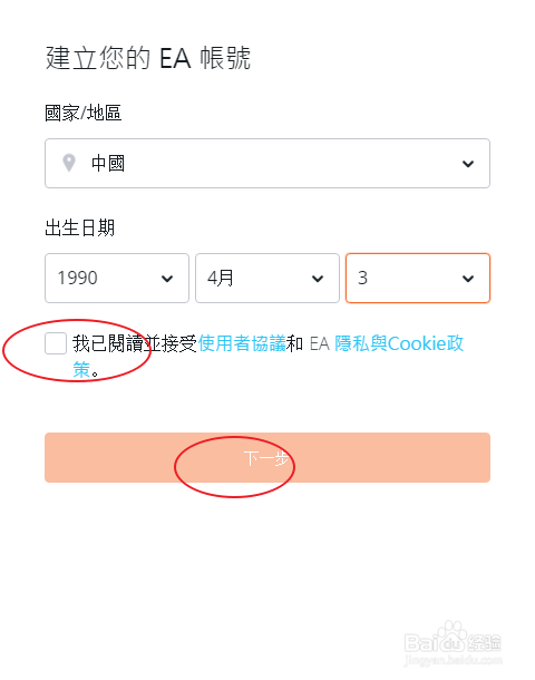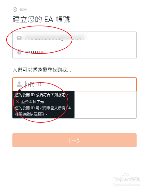 勾上赞成下一步,输入你的email,输入设置的密码,输入一个ID,ID随意起的。(密码要求大写小写英文加阿拉伯数字,不得少于八位。)
