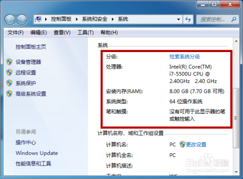 然后打开系统界面后可看到我们的电脑设置装备摆设,与官网保举的设置装备摆设比拟较就知道电脑是否适合玩英雄联盟。
