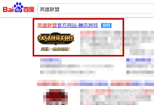 打开百度浏览器搜刮【英雄联盟】,然后点击打开英雄联盟官网。