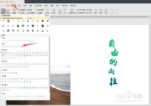 点击“插入→外形→选择合适的外形”,这里的外形可自由选择。