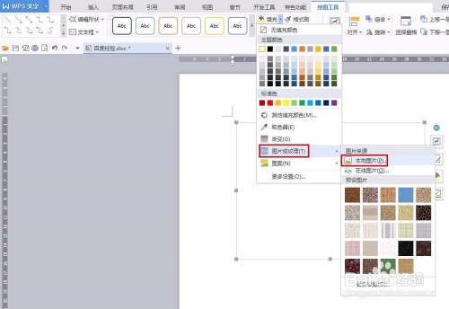 第四步:在“填充”下拉菜单中选择“图片或纹理--当地图片”。