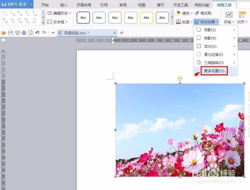 第六步:选择“外形结果”下拉选项中的“更多设置”。