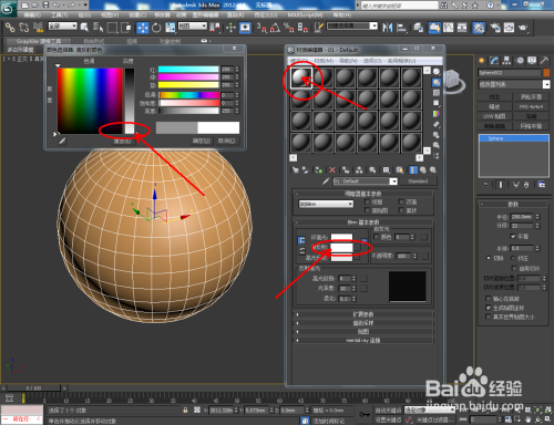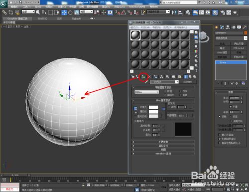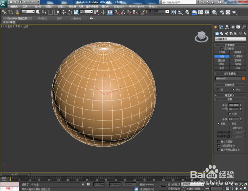打开3Dmax2012软件,点击【建立】-【几何体】-【球体】,在作图区域绘制一个球体模子并按图示设置好球体的各个参数;