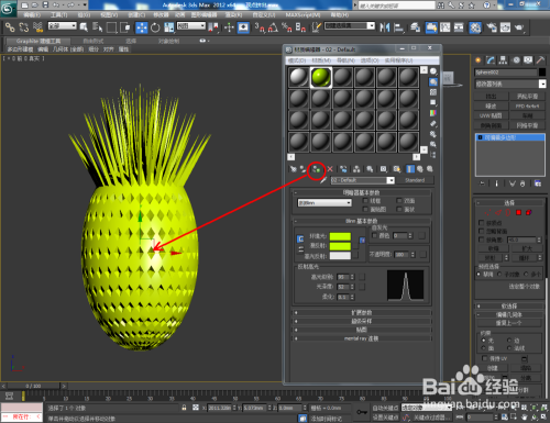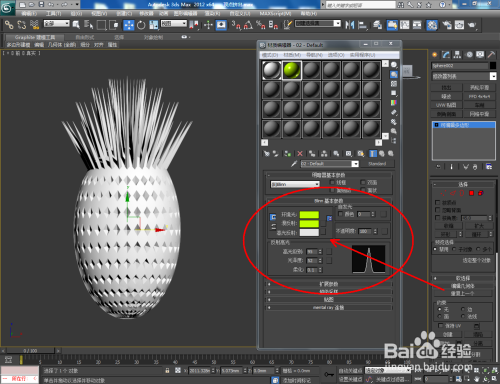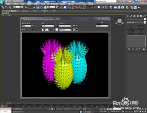 点击【材质编纂器】,按图示参数设置出几个彩色材质球并附加给模子。最后,点击【衬着】将我们经由过程可编纂多边形极点挤出建造出来的模子衬着出图即可。