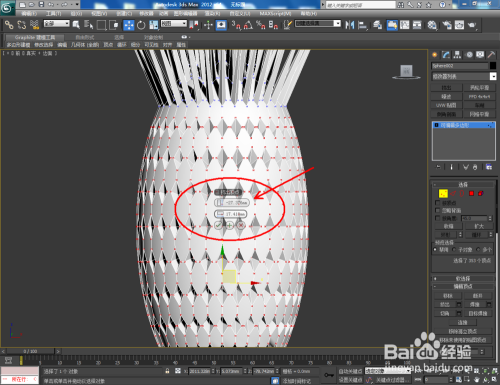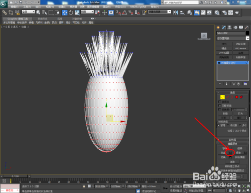 选中模子,点击鼠标右键-【转换为】-【转化内可编纂多边形】。点击右边工作区中的【极点】图标,选中图示模子上的点后,点击【挤出】右边的小方框,按图示设置好挤出的各个参数,将选点进行标的目的外挤出(如图所示);