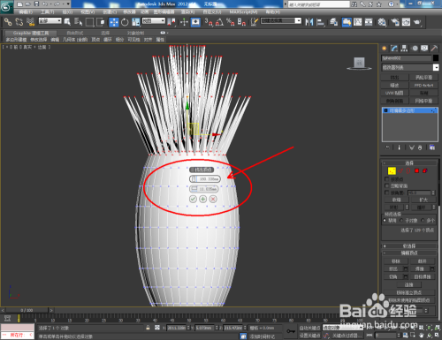 点击右边工作区中的【极点】图标,选中图示模子上其余各点后,点击【挤出】右边的小方框,按图示设置好挤出的各个参数,将选点进行标的目的内挤出(如图所示);