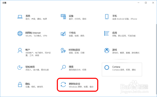 在Windows 设置窗口中,点击更新和平安,进入Windows 更新窗口;