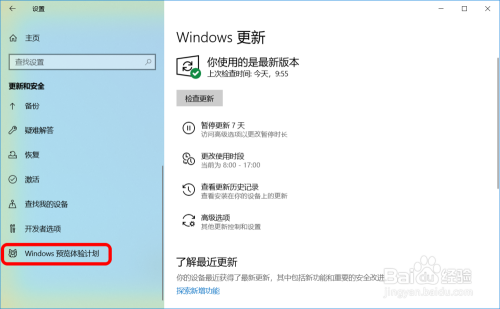 在Windows 更新窗口中,我们点击最下端的 Windows 预览体验打算;