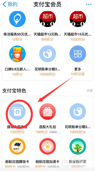 划到中心部门,在支付宝特色中,点击“提现免办事费”