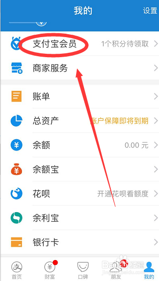 在我的界面,点击“支付宝会员”,进入支付宝会员界面