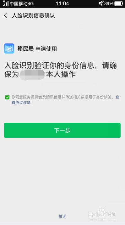 接着大师勾选“赞成”,点击“下一步”,起头人脸识别信息确认