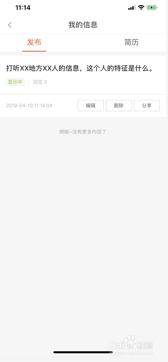 可以在“我的”—“我的信息”里找到本身发布的信息,二次编纂或删除信息。