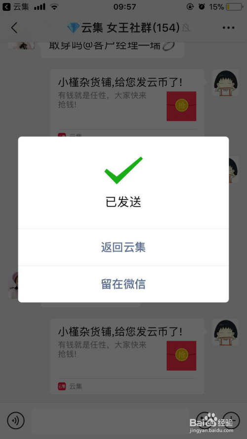 在底部弹出的分享到选择微信 ,选择对应的一个聊天群。