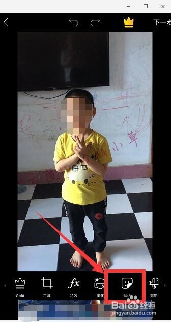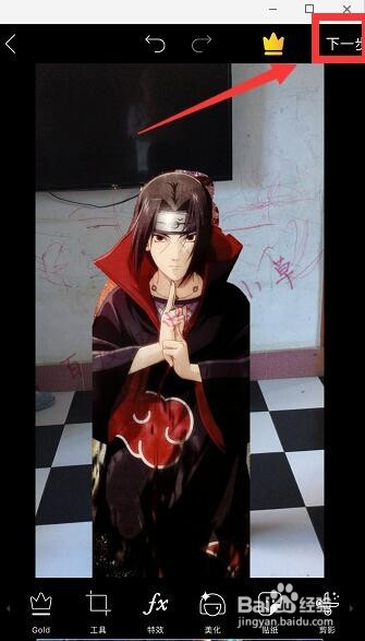 双指放大人物特效,单指拖动到合适的位置,好了点击“下一步”。