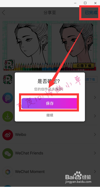 点击右上角“已完当作”,然后点击“保留”,并将保留好的图片录屏。