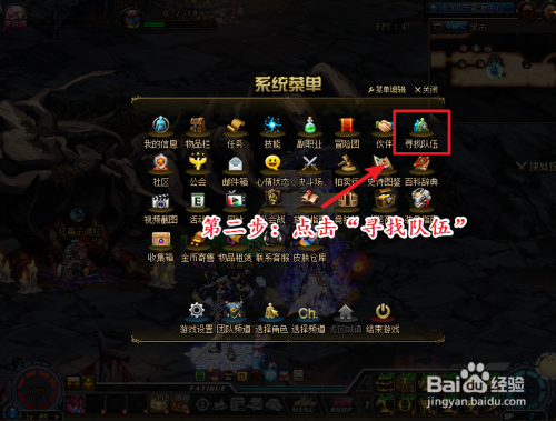 DNF组队步调二:打开DNF游戏菜单面板今后。点击面板右上角的“寻找组队”功能。