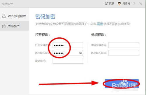 在打开的密码设置页面有两种分歧级此外加密体例:“打开权限”和“编纂权限”。利用“打开权限”后,没有密码就打不开文档,利用“编纂权限”没有密码也可以打开阅读文档单不克不及进行编纂点窜操作。科一根及本身的保密需要选择此中的一种