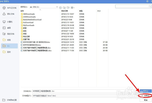 在“另存为”对话框中,选择好保留路径和文档名称之后,不要点击“保留”,我们单击“加密”