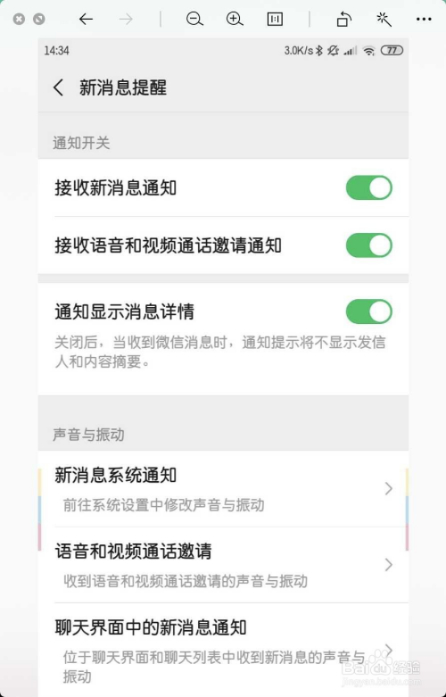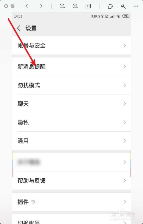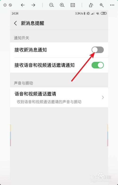点击接收新动静通知,把它打开了。