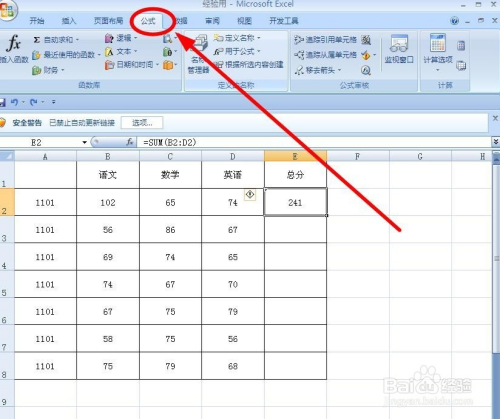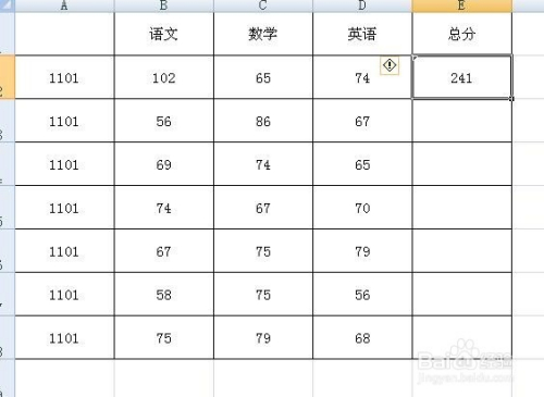 有一份学生成就,可以在E2单位格操纵乞降公式求出总分
