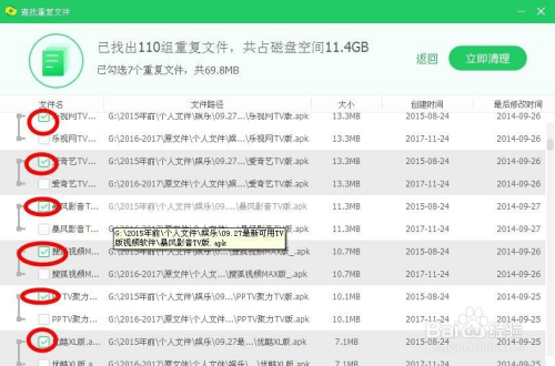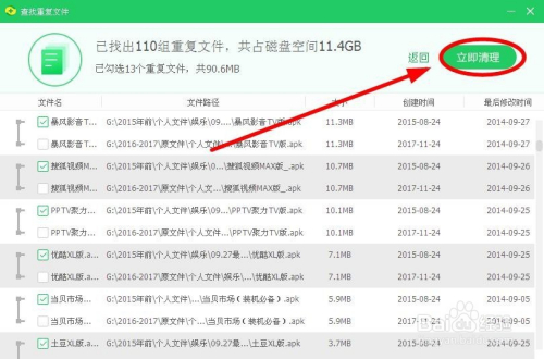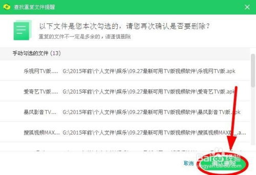 在查找成果中,勾选要删除的反复文件(细心查看真是反复文件后,确当真的不需要了)