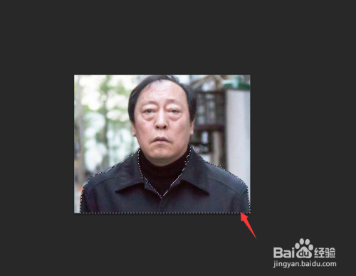 利用魔棒东西之后,我们将苏大强的外衣区域给勾选出来,如下图所示。