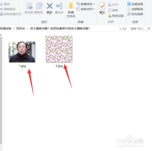 首先我们在网上找的素材,找到素材,一个是苏大强穿衣服的图片,别的一个是花布,如下图所示。