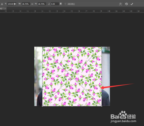 然后我们将之前筹办好的花布拖入到素材一的图层之上,如下图所示。