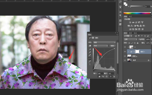 下一步我们利用曲线东西,将整个画面的亮度给调亮,如下图所示。