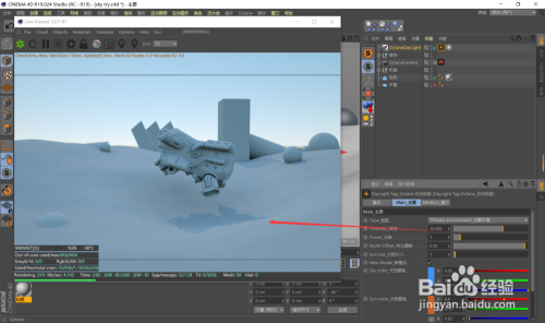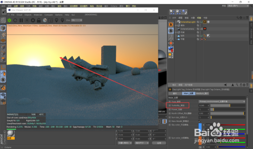 Daylight在OC衬着器中半斤八两于C4D中的物理天空,可是OC衬着器中的良多结果在OC中时没法衬着的,此刻让我们来看一下太阳光的设置。