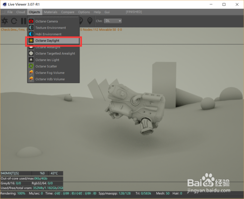打开OC衬着器的及时衬着窗口,添加一个太阳光的标签。