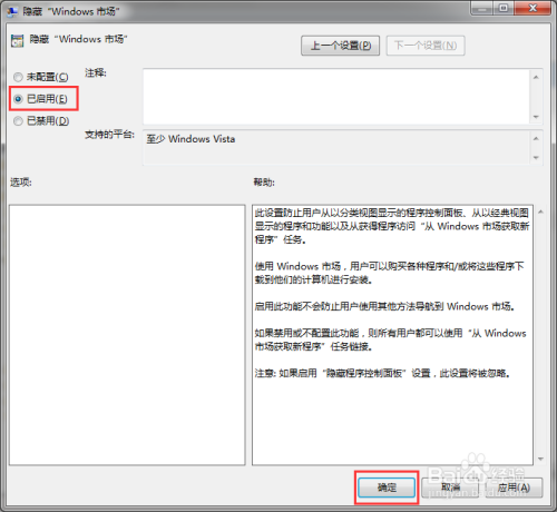 勾选对话框中的“已启用”,并点击“确定”按钮。