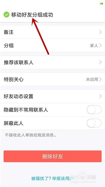 返回到联系人中可看到适才的老友已经移动了分组。